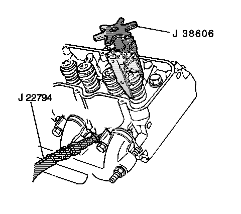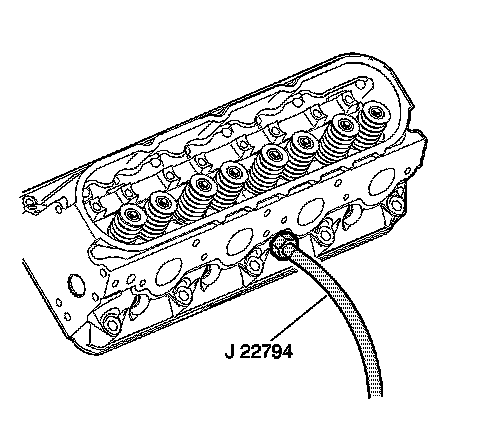 8. Apply compressed air to the J 22794 in order to hold the valves in place.