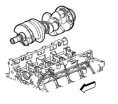 4. Notice: To maintain proper crankshaft end play, use extreme care during crankshaft installation. Avoid scoring or damaging the thrust bearing.