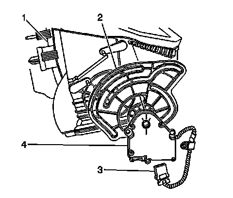 2. Disconnect the electrical connector (3) from the mode actuator (4).