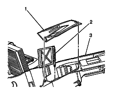 15. Remove the HVAC module chamber plate (1) from the lower HVAC module case (3).
