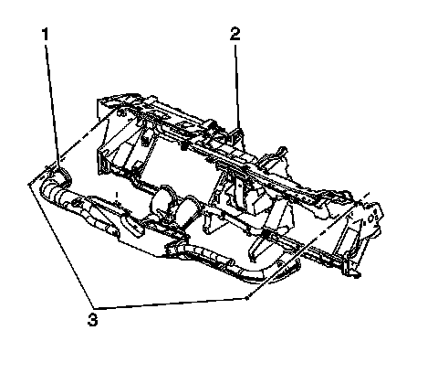 1. Install the air distribution duct (1) to the I/P trim panel (2).