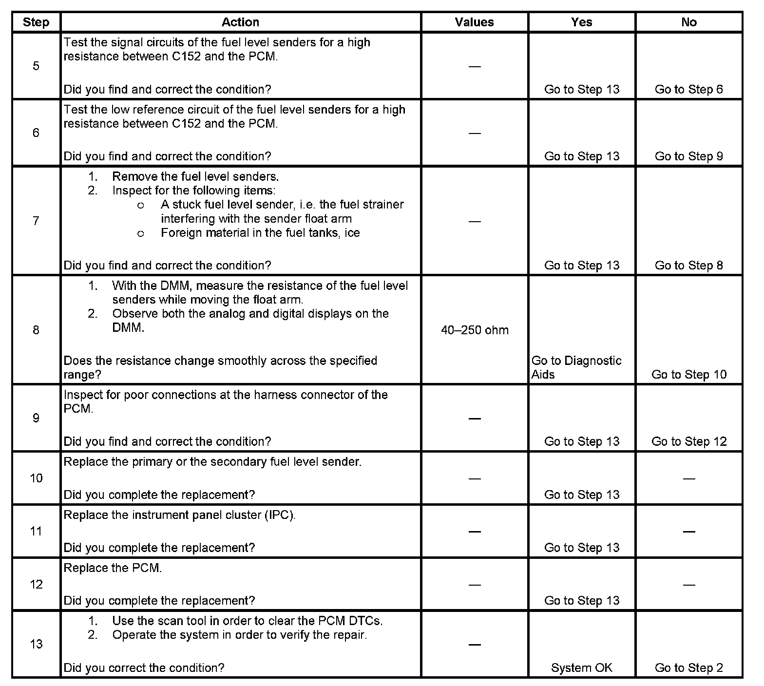 3. This step tests for high resistance in the signal circuits and the low reference circuit of the fuel level senders.