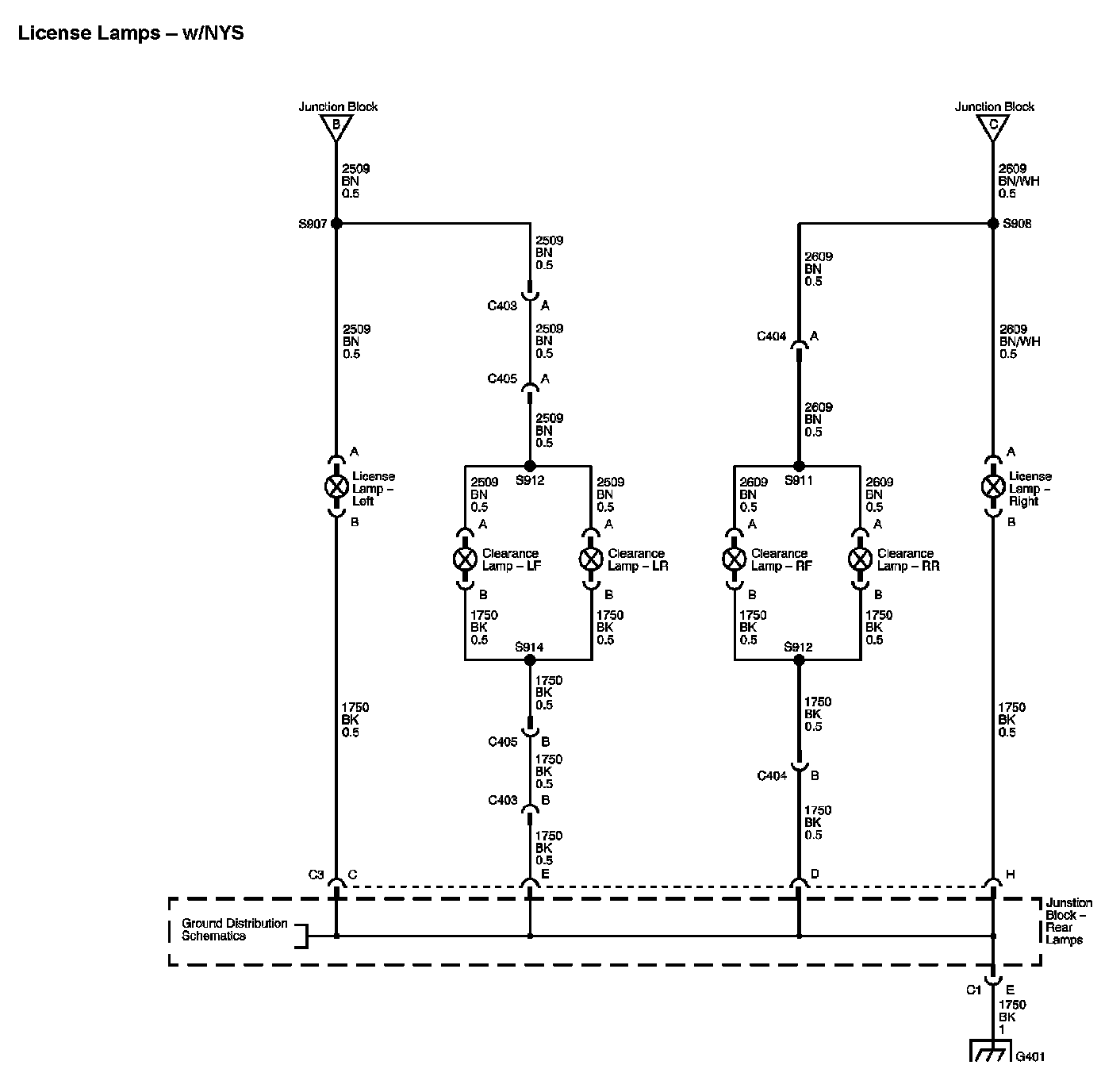 Locations: The locations for the Connectors, Grounds, Splices, and Grommets shown within these diagrams can be found via their numbers at Vehicle Locations. Locations