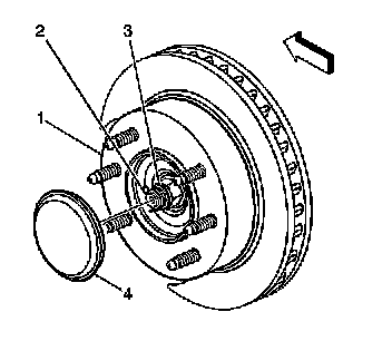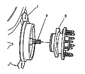 1. Install the wheel hub and bearing (3) to the vehicle.