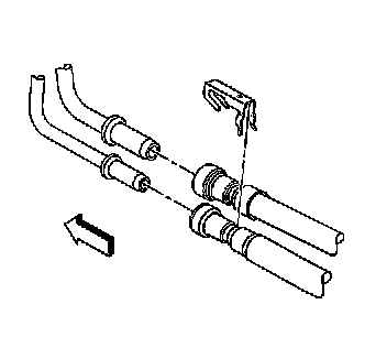 3. If equipped with the 5.3L (L59) engine, remove the retainers from the fuel feed and return line to engine quick-connect fittings.