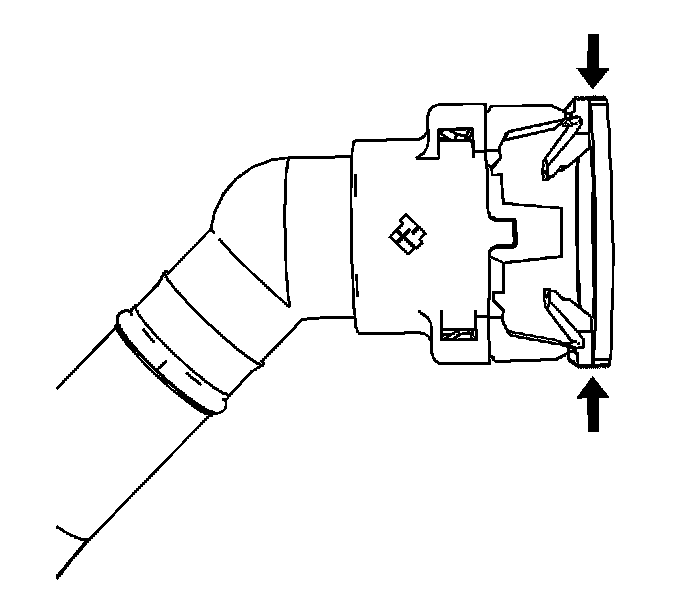 4. Squeeze where indicated by the arrows on both sides of the plastic ring to disengage the quick connect fitting.