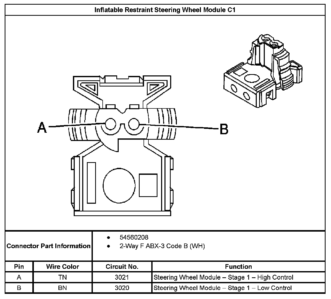 Inflatable Restraint Steering Wheel Module C1: