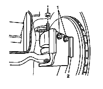 9. Remove the steering knuckle (2) from the vehicle.