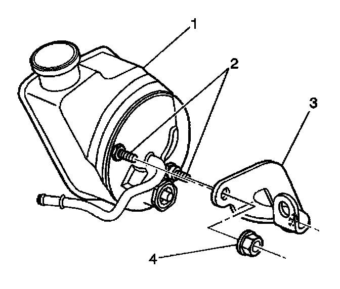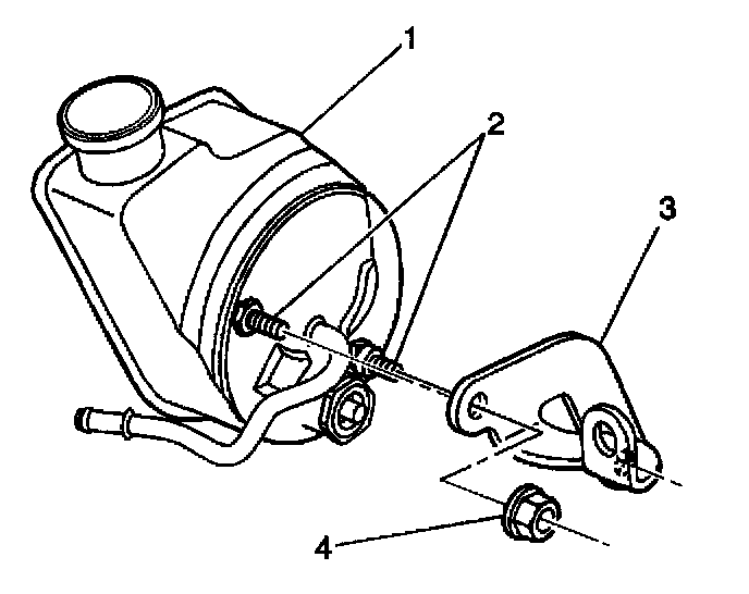 1. Install the bracket (3) to the rear of the pump (1).