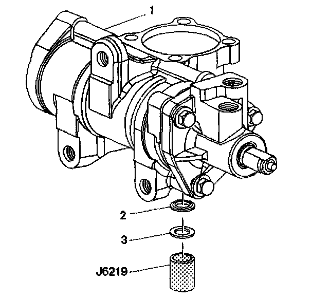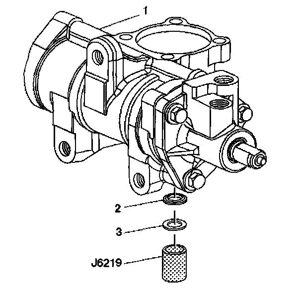 5. Install the backup washer (3) onto the steering gear housing (1).