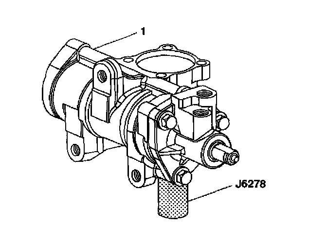 9. Insert J 6278 through the hole in the top of the steering gear housing (1).