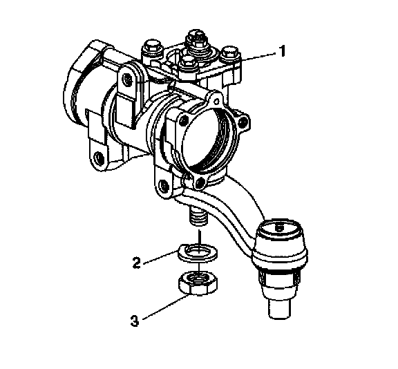 Important: Do not install the lock washer and nut until all components have been installed onto the steering gear housing.