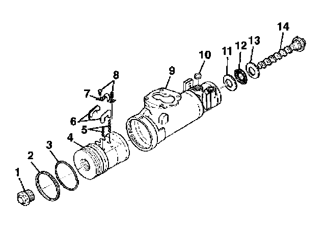 3. Install the worm shaft (14) to the rack piston (4) outside of the steering gear housing (9).