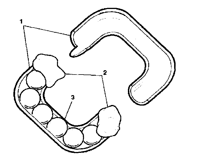 7. Install the remaining rack piston balls (3) into the ball guide (1) using grease at each end (2) to retain the rack piston balls (3).