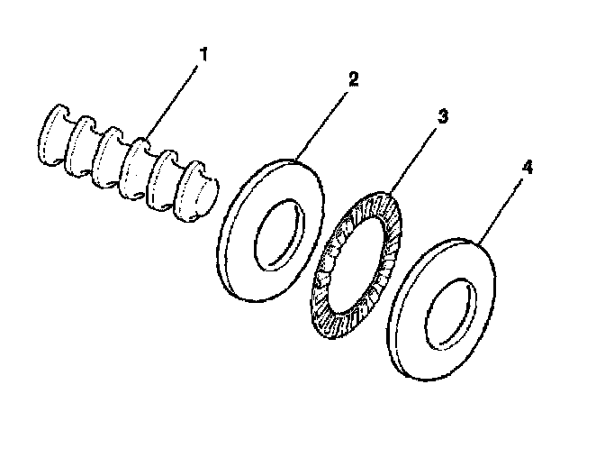 12. Install the flat races (2, 4) and the thrust bearing (3) onto the worm shaft (1).