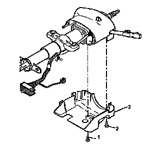 2. Install the lower trim cover (3) onto the steering column. Install 2 pan head tapping screws (1, 2) into the lower trim cover (3).