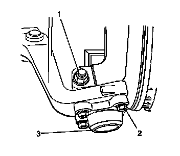5. Remove the bolts (2) retaining the lower ball joint (3) to the steering knuckle.