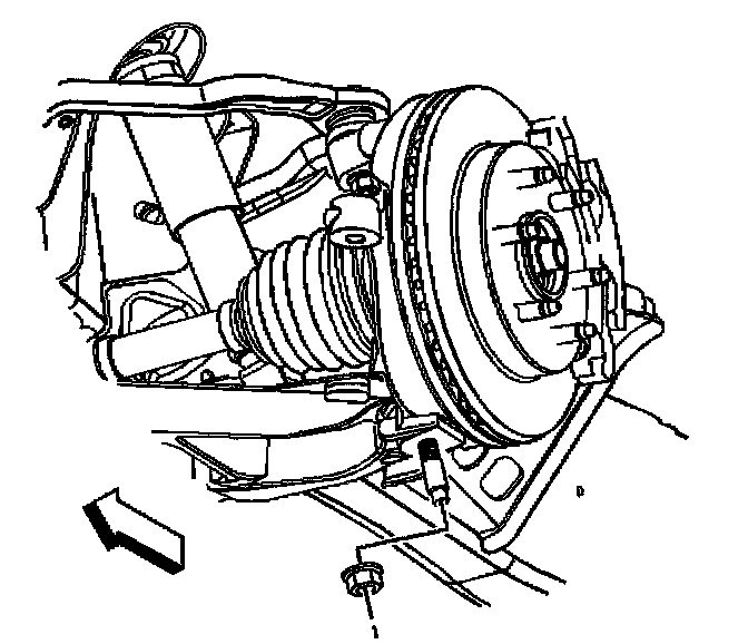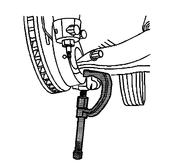 9. Disconnect the lower ball joint stud from the steering knuckle using J43631 and J45851.