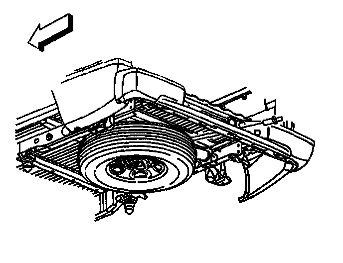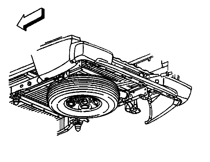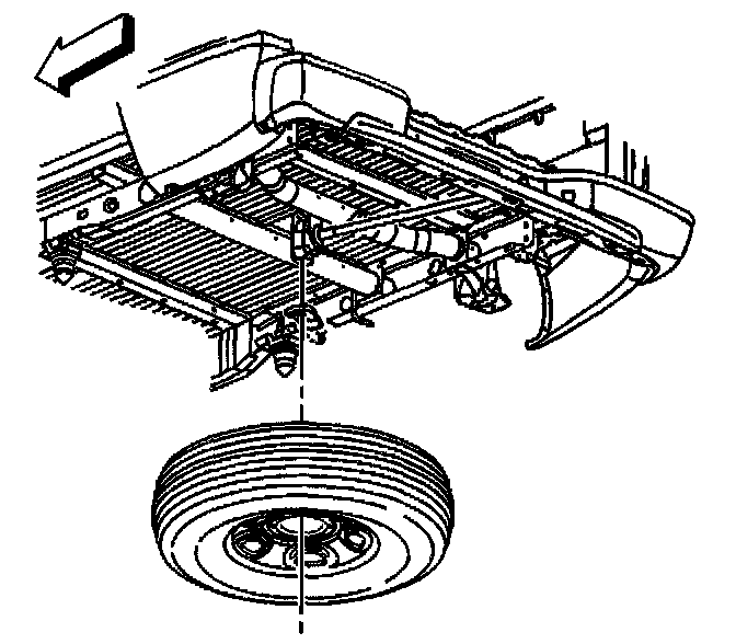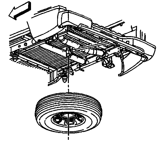Notice: Use only hand tools to lower and raise the spare tire hoist assembly. Do not use air tools. The use of air tools at high speeds will damage the spare tire hoist assembly.