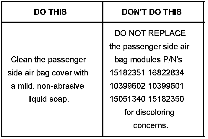 Information on Cleaning Discolored Passenger Side Air Bag Cover