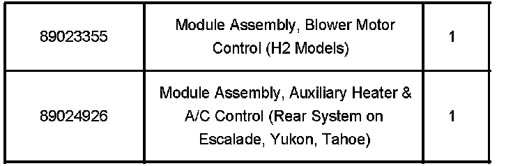 Technicians are to replace the blower motor control module also called the Linear Power Module (LPM) with the P/N listed below. Refer to either the Blower Motor Control Processor Replacement or Blower Motor Processor Replacement-Auxiliary procedures in SI. After replacement of the blower motor control module the customer may notice a slightly higher than expected blower motor speed at any of the blower speed settings.