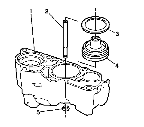 1. Install the 3rd clutch accumulator piston inner (3) and outer (1) seals. Lubricate the 3rd clutch accumulator piston seals (1, 3) with DEXRON III automatic transmission fluid.