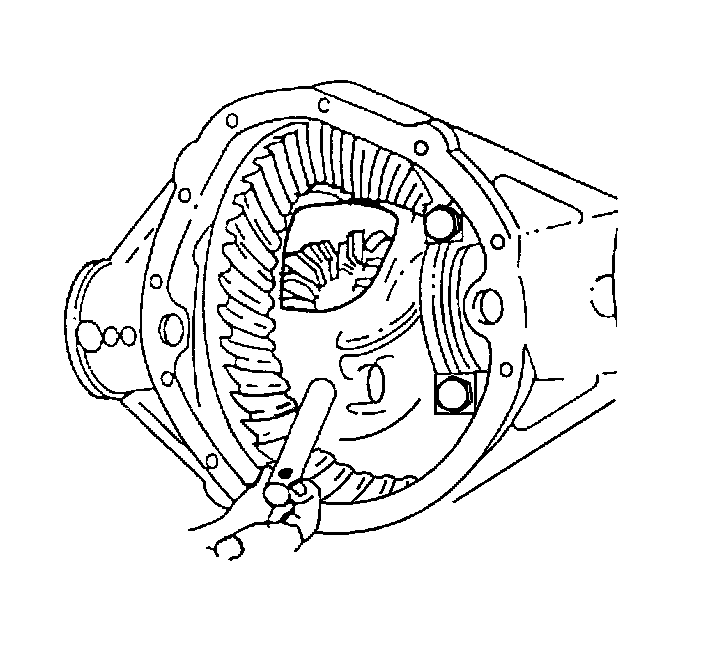 7. On axles with a locking differential, remove the shaft part way. Rotate the case until the pinion shaft touches the housing.
