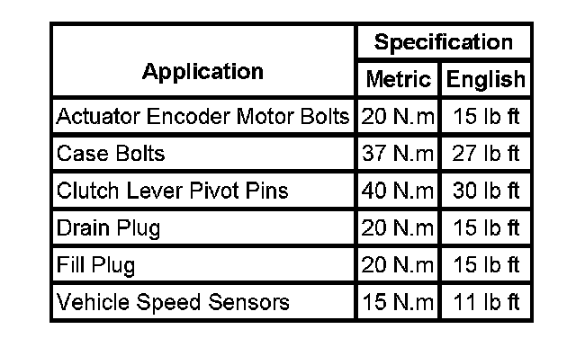 Fastener Tightening Specifications: