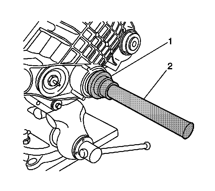 2. Install the new axle shaft seal using the J 45225 (1) and the J 8092 (2).