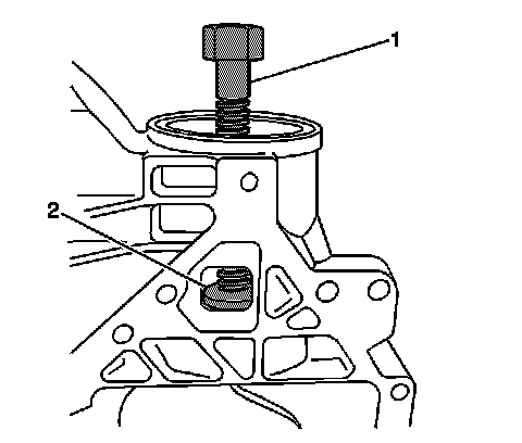 37. Install the forcing screw (1) of the J 45754 into the J 45754-3 (2).