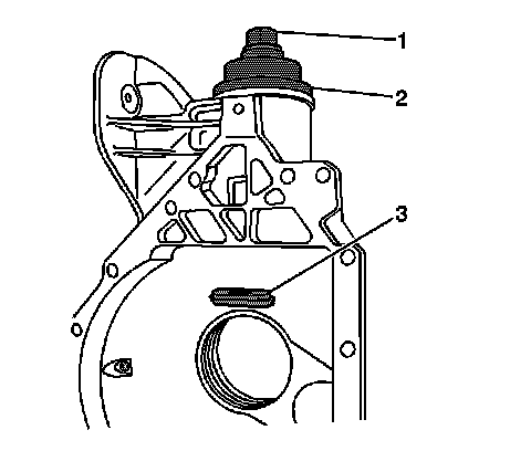 40. Install the J 45754-4 (3) into the pinion bearing bore behind the outer pinion bearing cup. Slowly turn the forcing screw (1) until the J 45754-4 is evenly seated behind the outer pinion bearing cup bore and the J 45754-2 (2) is evenly seated over the outer pinion bearing cup bore.