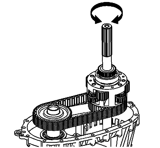 19. Rotate the rear output shaft three or four revolutions to rotate the planetary differential pinion gears. If properly aligned, the planetary pinion gears will rotate freely, and there will be no binding.