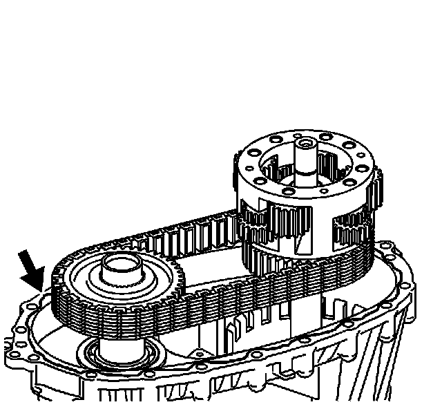 13. With the rear side of the planetary differential facing up, align the marks on the pinion gears. Position the alignment marks with an area on the planetary housing that can be reference for all gears.