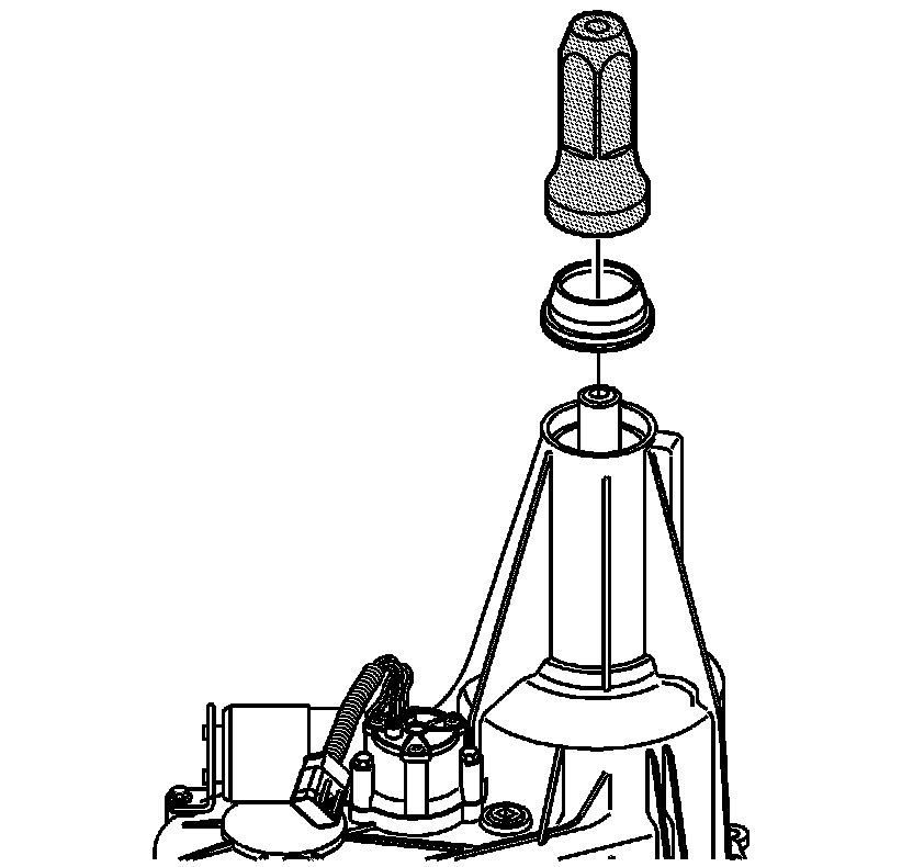 Notice: In order to prevent component damage, properly remove and install the shift detent lever shaft assembly. When removing or installing the shift detent lever shaft assembly, keep the shaft straight and do not tilt. Tilting the shift detent lever shaft assembly in the transfer case housing will break the tip on the end of the shaft.