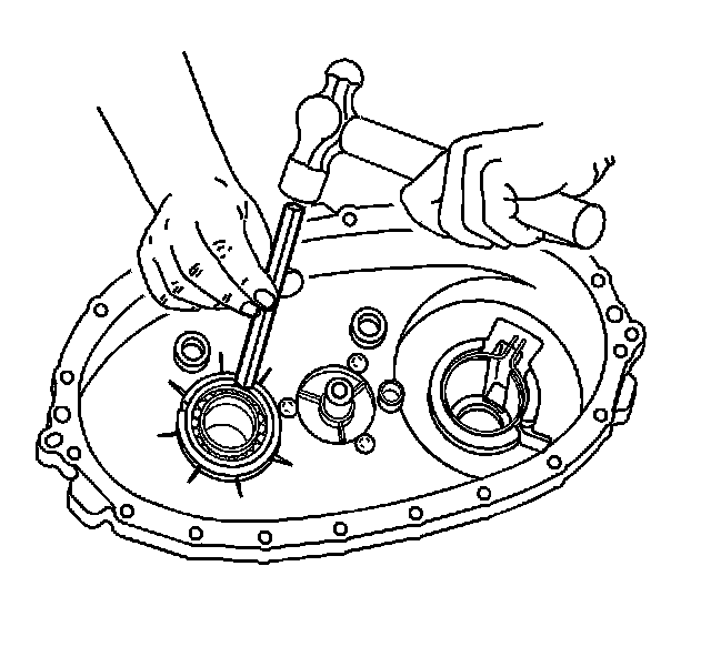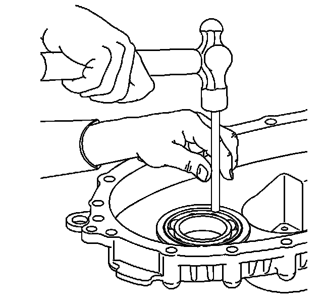 1. Install the rear output shaft bearing outer retaining ring until it is seated in the bearing groove.