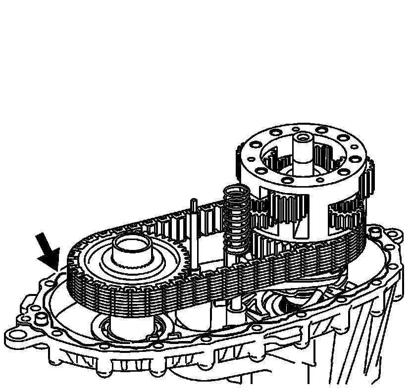 ^ Align the drive sprocket engagement teeth with the lockup shift assembly hub teeth.