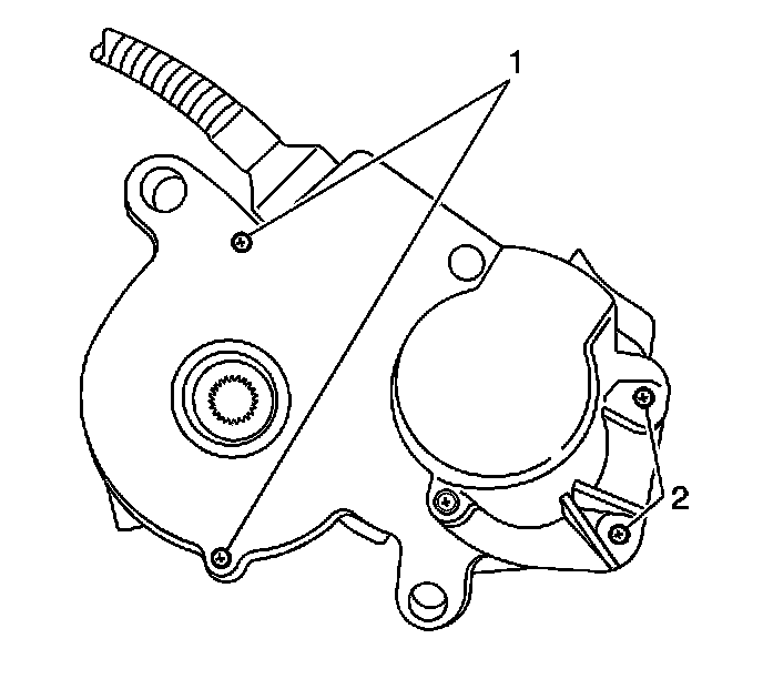 14. Install 2 NEW longer screws (2) to the motor cover.