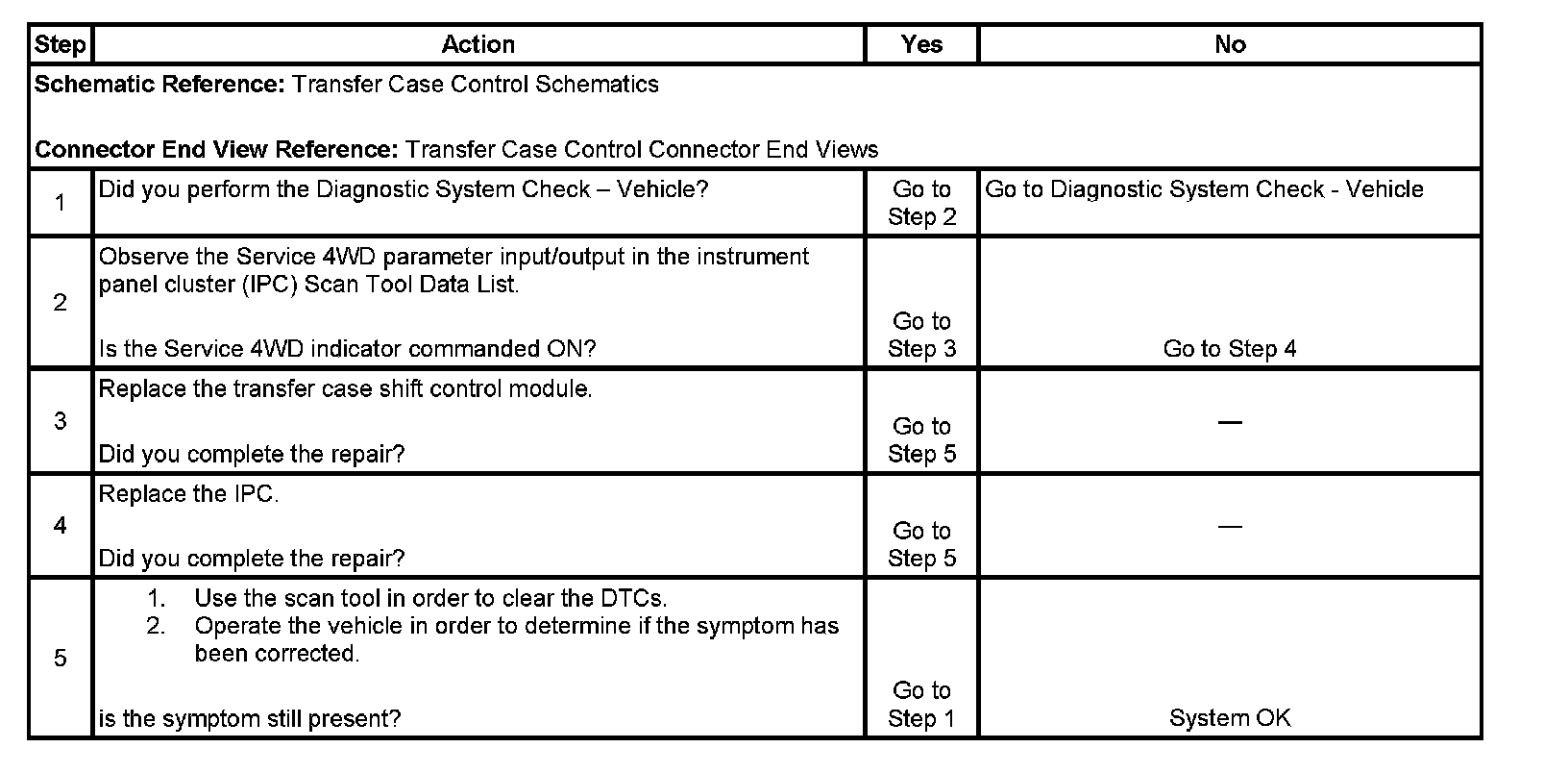 2. This step determines whether the failure is the result of a malfunctioning transfer case shift control module or the IPC.