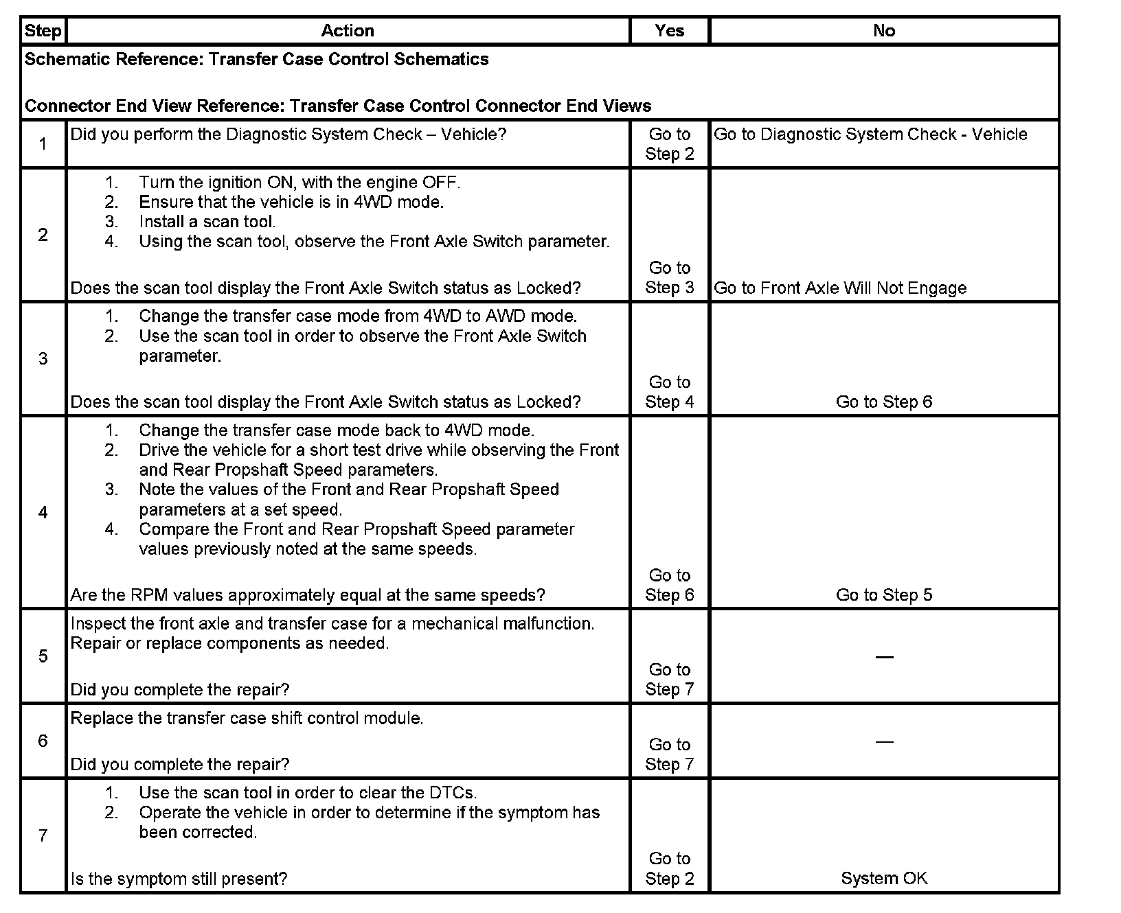 2. This step helps determine whether the front axle switch is functioning properly.
