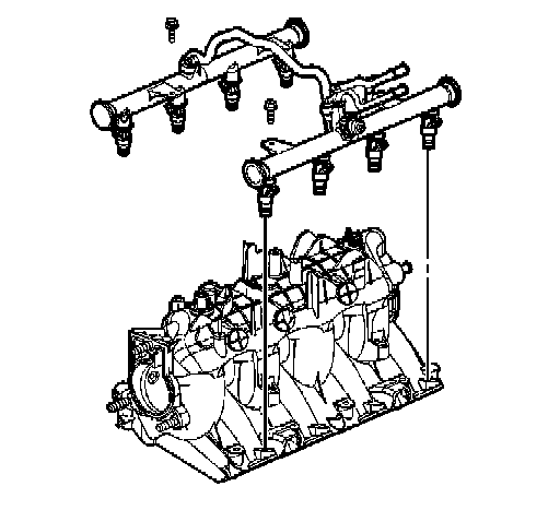 - Remove the fuel rail assembly carefully in order to prevent damage to the injector electrical connector terminals and the injector spray tips. Support the fuel rail after the fuel rail is removed in order to avoid damaging the fuel rail components.