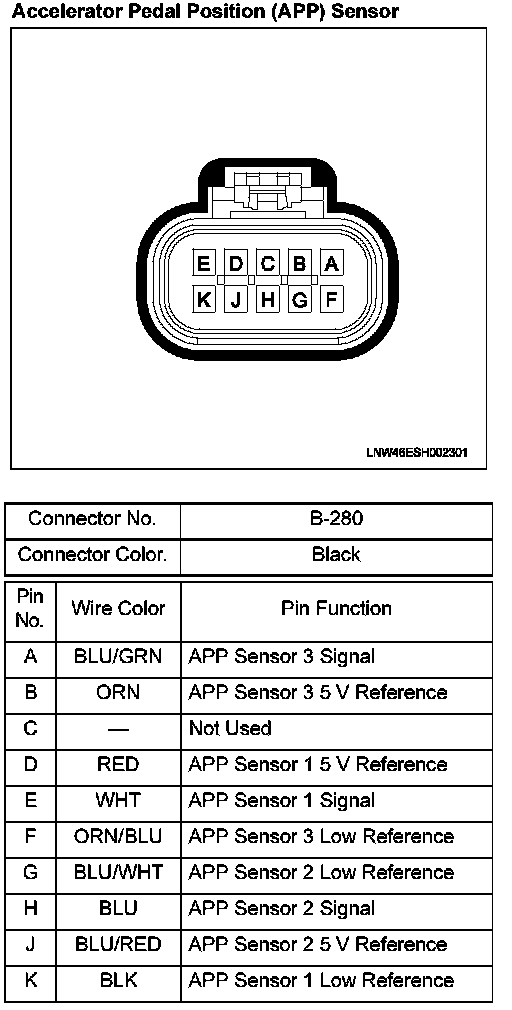 Engine Controls Connector End ViewsAccelerator Pedal Position Sensor: