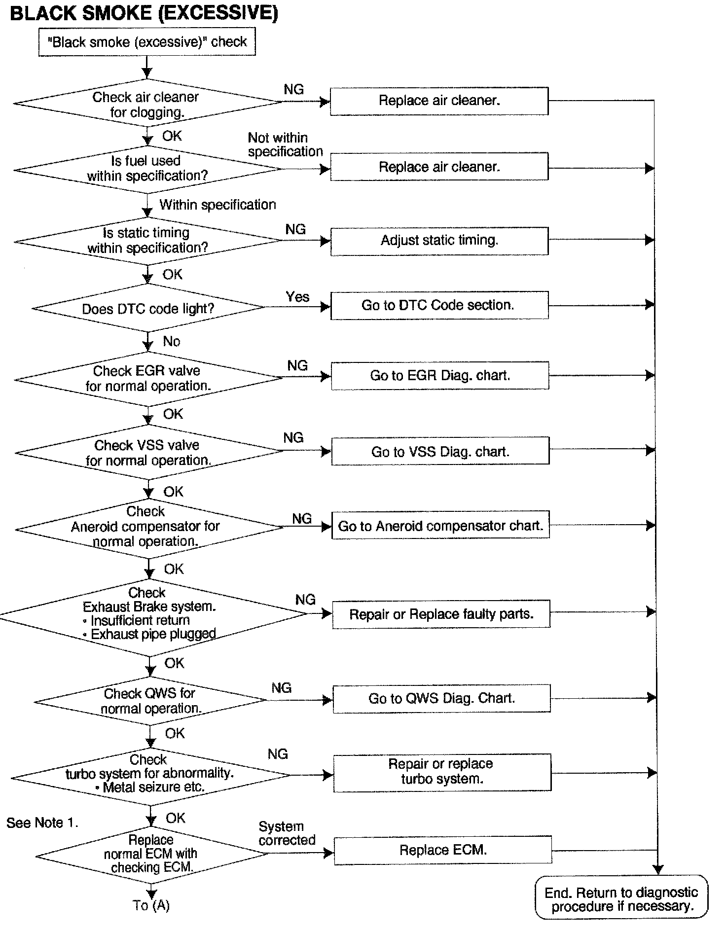 Black Smoke (Excessive)NOTE 1: The condition of the system in which the malfunction has occurred should be checked by making comparisons between the vehicle ECM and the checking EGM.