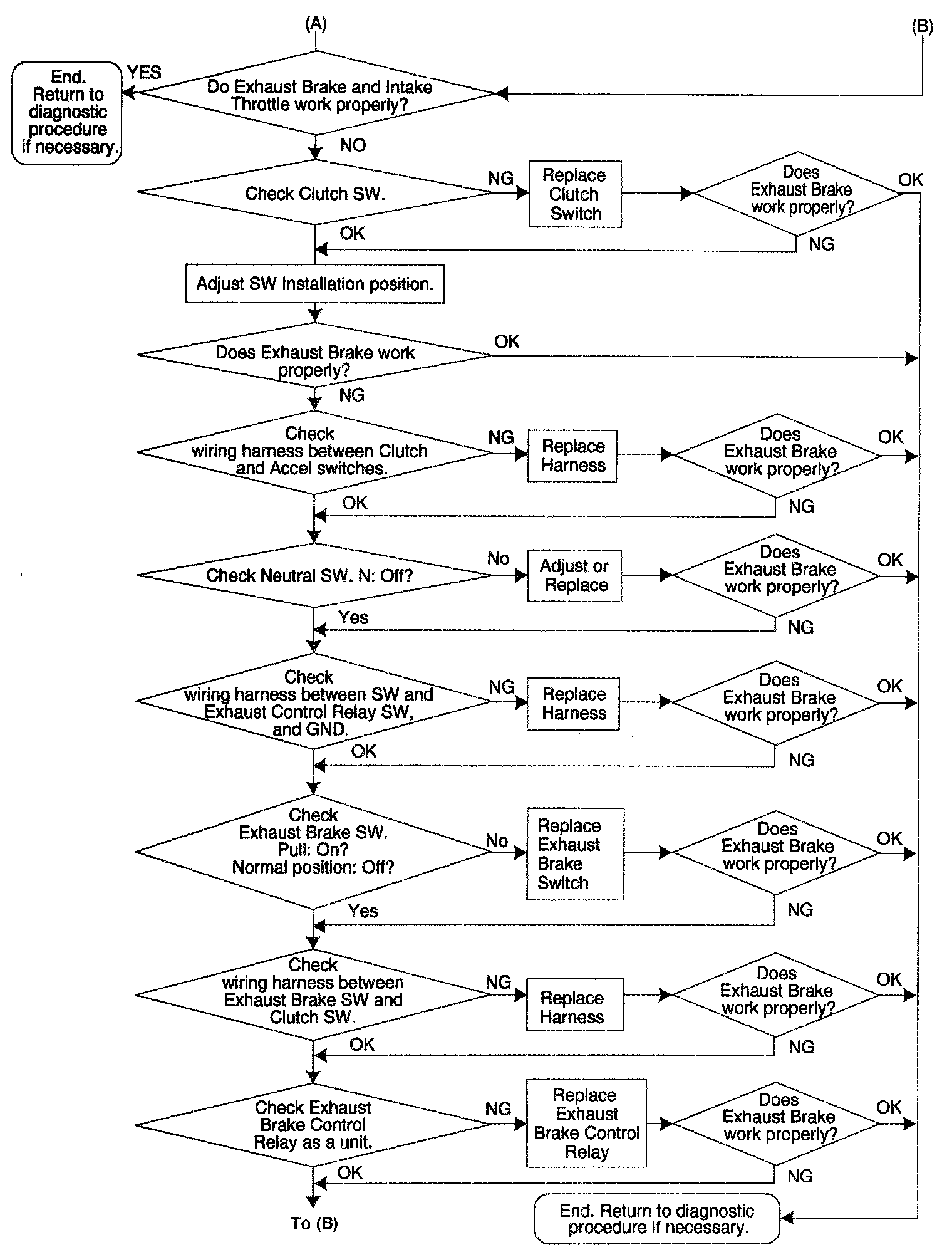 Actuate the exhaust brake with the engine idling and make sure that you hear the valve strike on the stopper.
