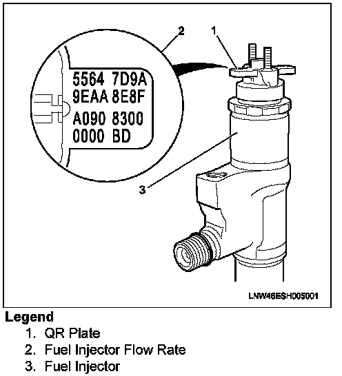 Recording Fuel Injector Flow Rate Information from the QR plate on the replaced injector housing;
