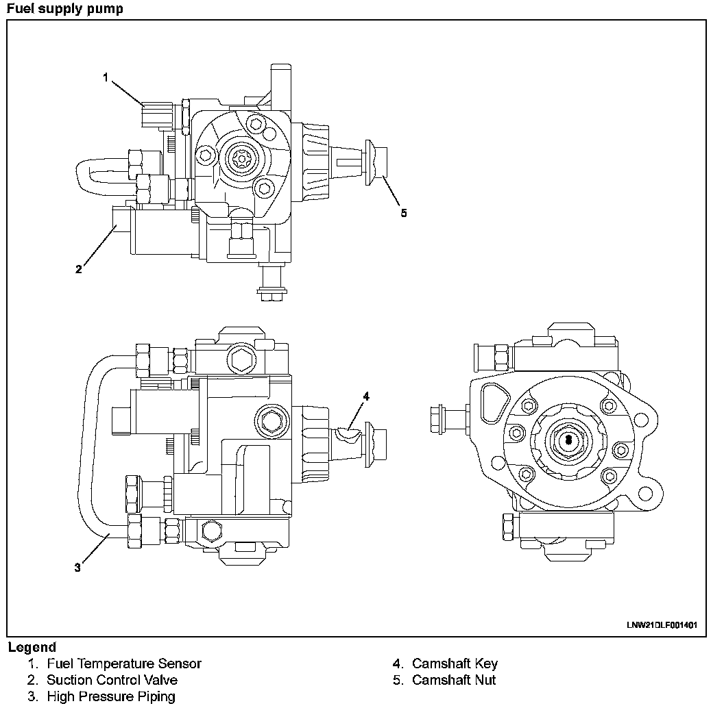 The fuel injector is very sensitive to foreign material. Foreign material will result in fuel system breakdown. Exercise great care not to allow the entry of foreign material into the fuel system or fuel injectors during the removal and installation procedure.