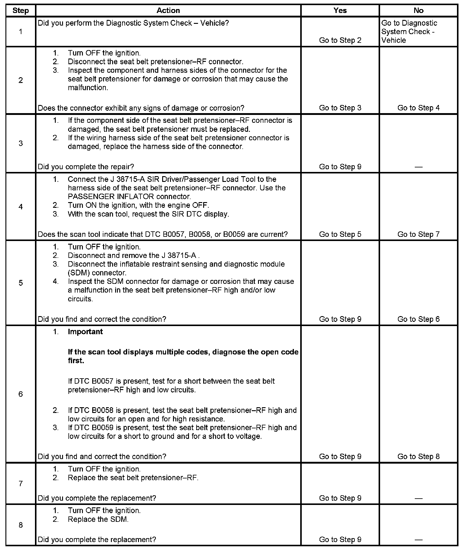 - DTC B0057 Right Front/Passenger Pretensioner Deployment Loop Resistance Low