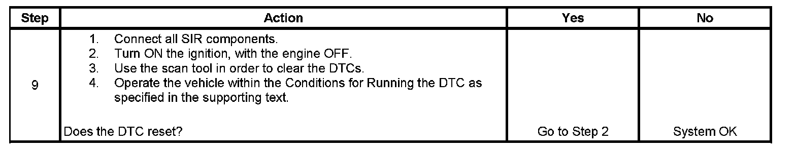 The passenger seat belt pretensioner deployment loop consists of a seat belt pretensioner-RF and the seat belt pretensioner-RF high and low circuits. A shorting bar used within the seat belt pretensioner connector shorts together both the seat belt pretensioner high and low circuits when the connector is disconnected. This will help to prevent unwanted deployment of the pretensioner during servicing. During a frontal crash of sufficient force the inflatable restraint sensing and diagnostic module (SDM) will allow current to flow through the deployment loop in order to deploy the seat belt pretensioner. The SDM performs continuous diagnostic tests on the deployment loops to check for proper circuit continuity and for shorts to ground or voltage. If a malfunction is detected, a diagnostic trouble code (DTC) will be stored in memory.