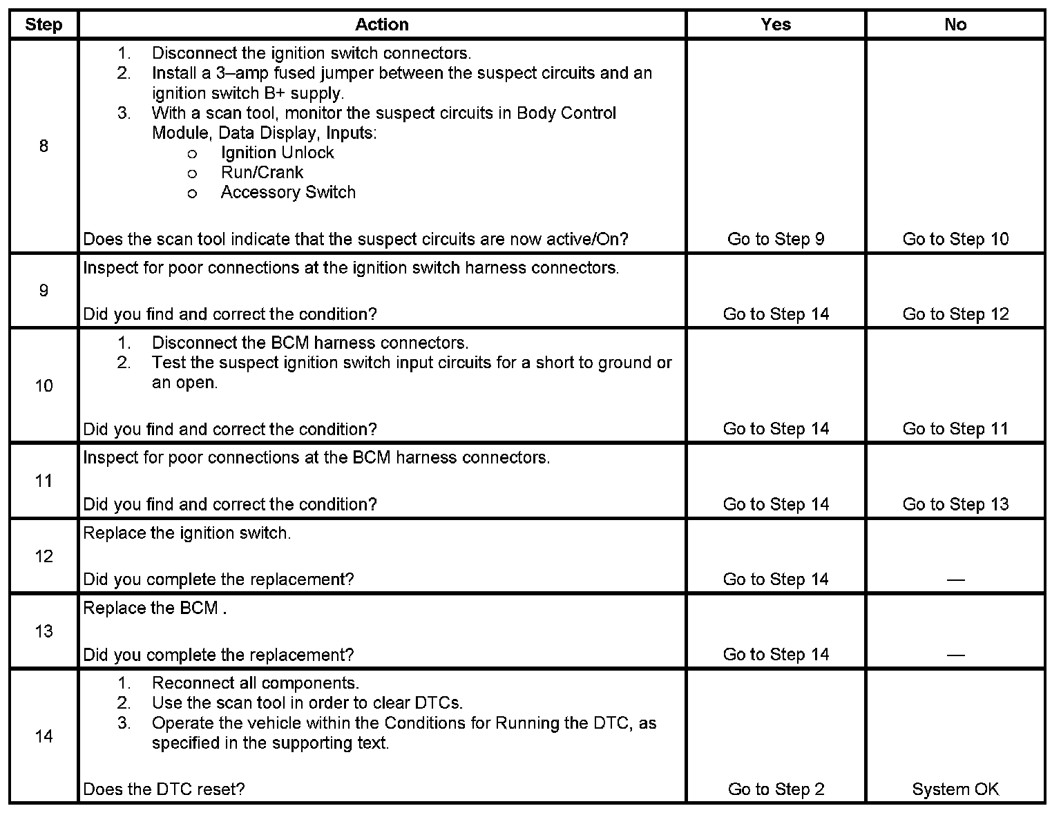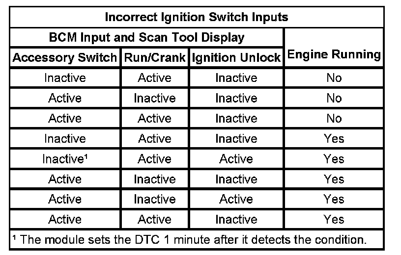 One of the 3 monitored ignition switch circuits has malfunctioned. The DTC will set, if one of the situations is present.