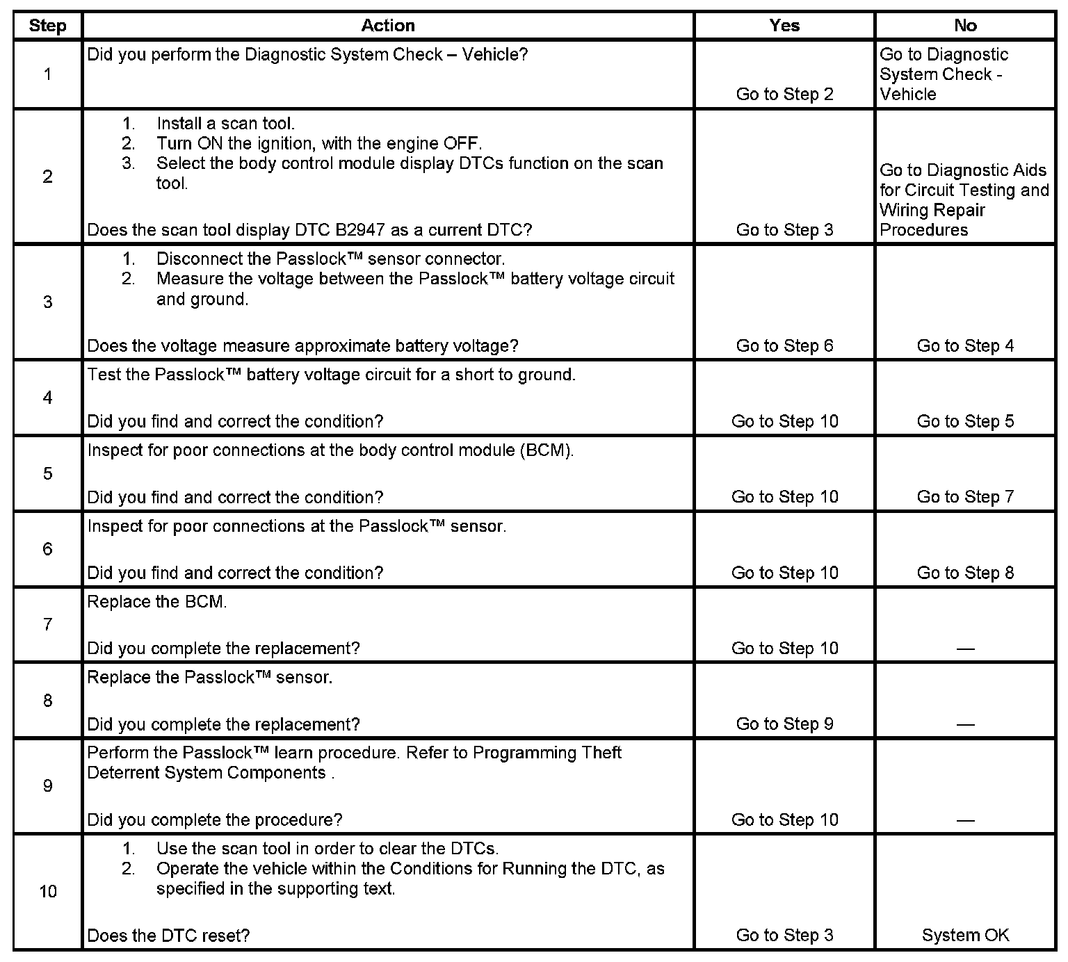 - When a short to ground is no longer present on the Passlock(TM) sensor power circuit, the ignition switch must be cycled from OFF to ON before this DTC can change from a current DTC to a history DTC.