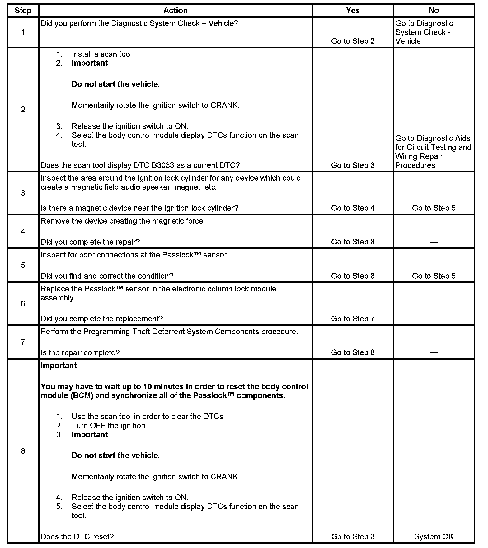 - Inspect the Passlock(TM) sensor harness for intermittent or poor connections.